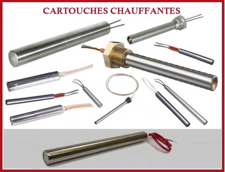 Les cartouches chauffantes, (connues également sous le nom de résistances cylindriques blindées ou crayons chauffants) se présentent sous orme tubes de différents diamètres et longueurs. Elles sont utilisées notamment dans le chauffage d'outillages, matrices, plateaux, boulons, canaux chauds, moules…